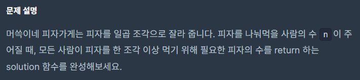 그 외에는 n을 7로 나눈 몫에 1을 더한 값을 answer 값에 넣어줬습니다~~ 😁
