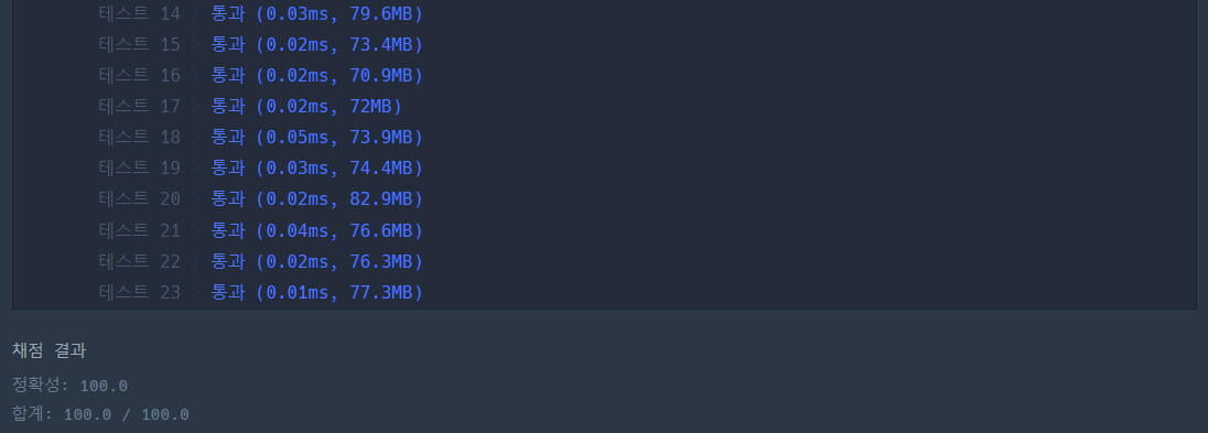 성공~ for문을 사용하지 않아 빠르게 처리되고 코드도 1줄이면 됩니다!