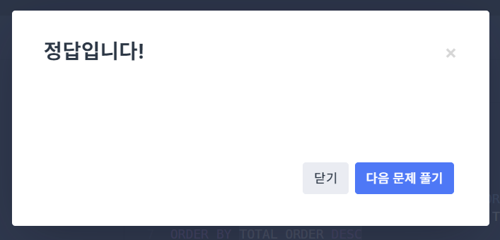 총 주문량을 내림차순해서 정리해주면 코드 끝!