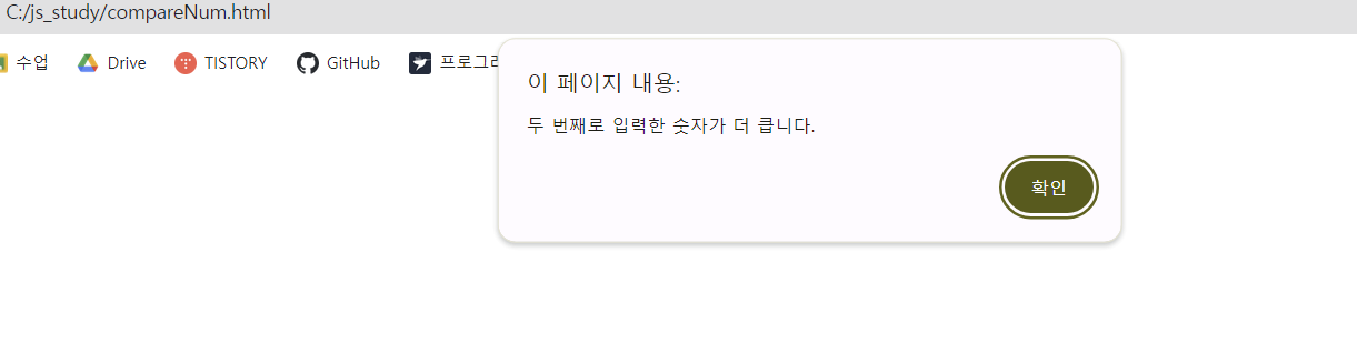 alert('첫 번째로 입력한 숫자가 더 큽니다.')