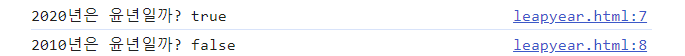 console.log(`2010년은 윤년일까? ${leapyear(2010)}`);