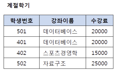 왼쪽 테이블과 오른쪽 테이블 중 중복된 왼쪽 테이블만 보여줌