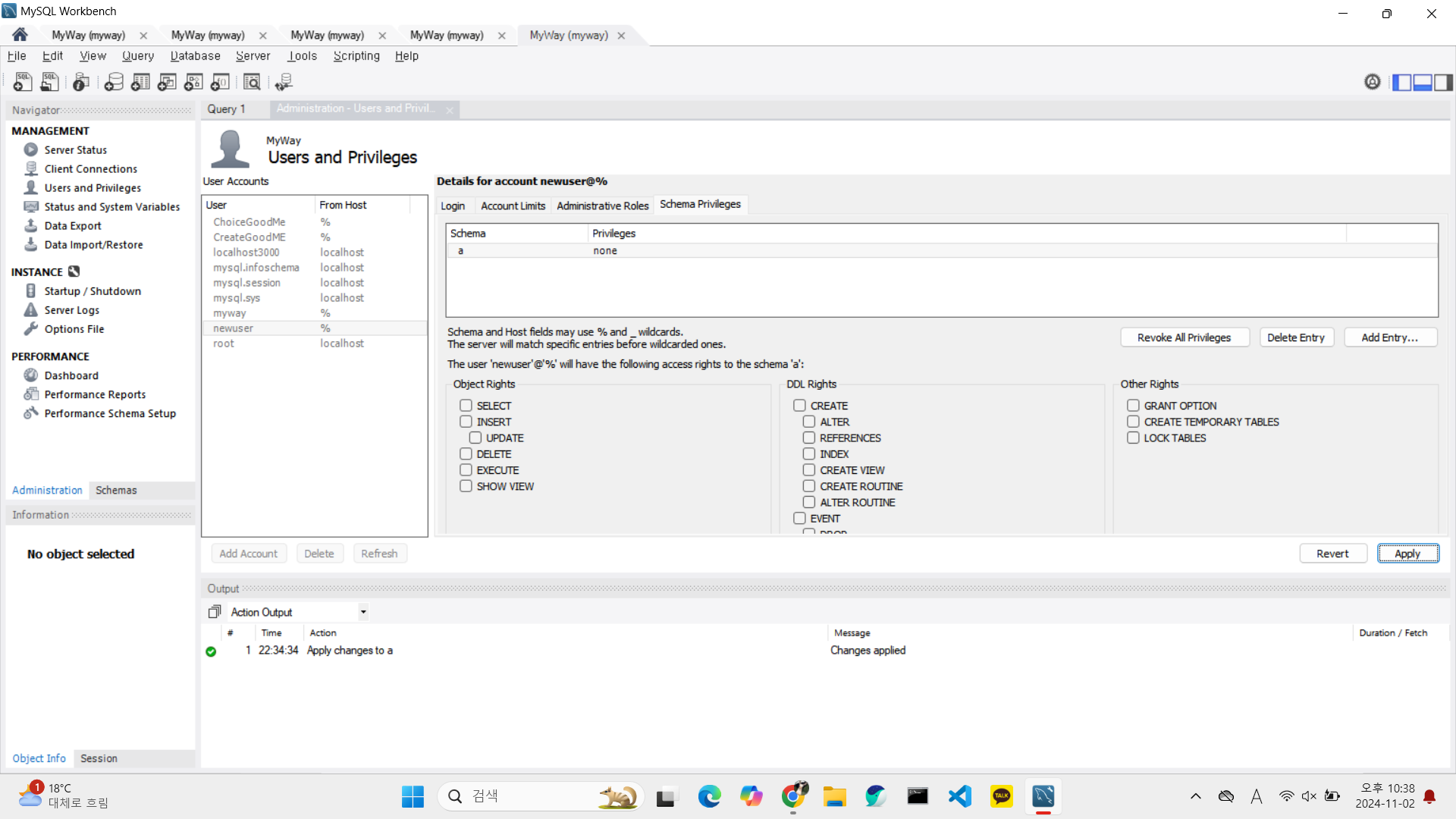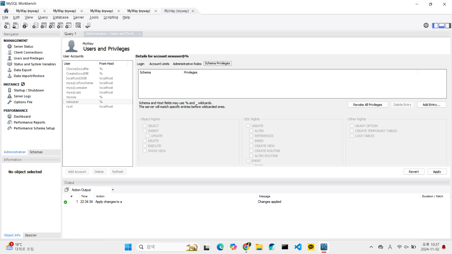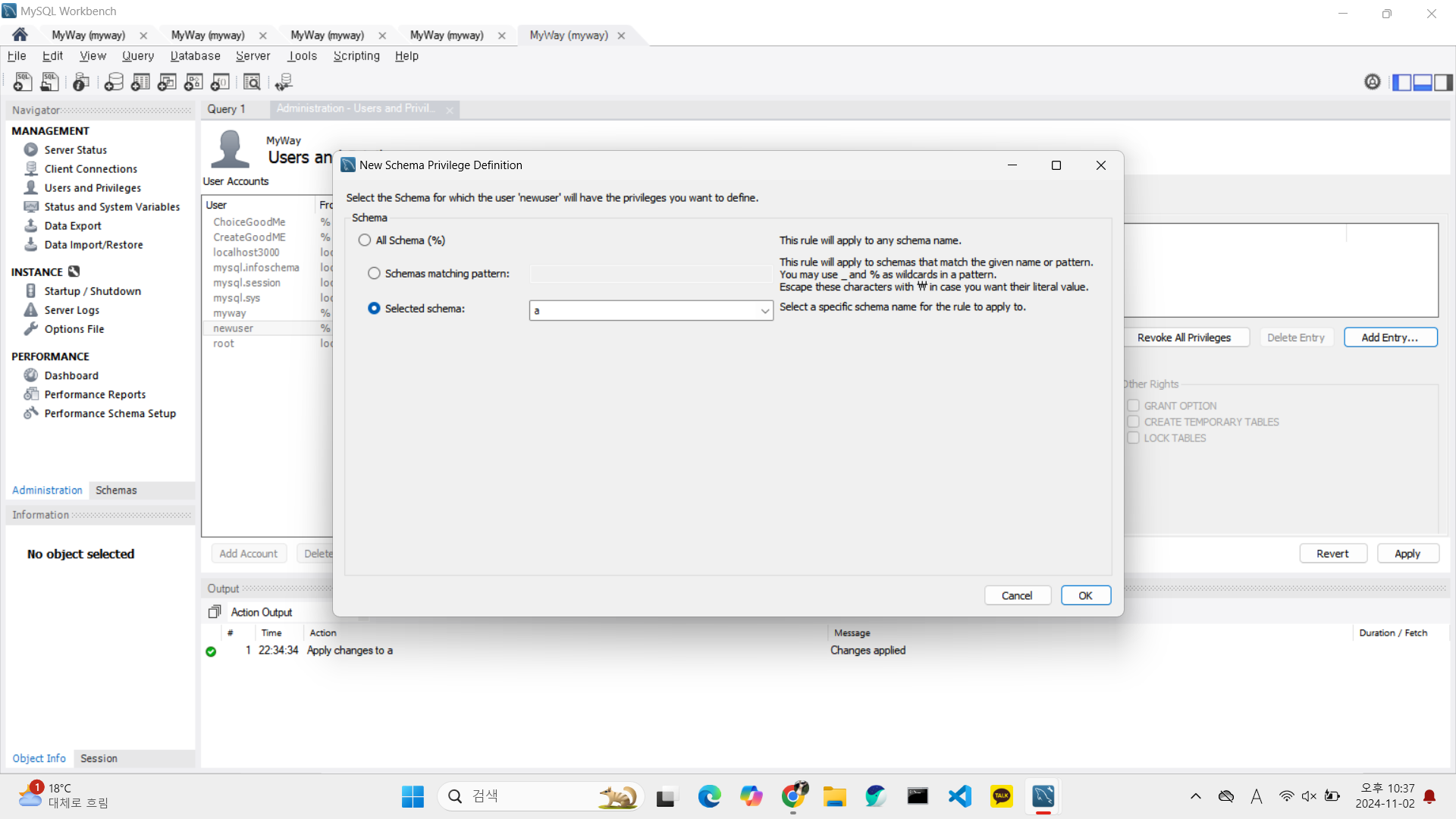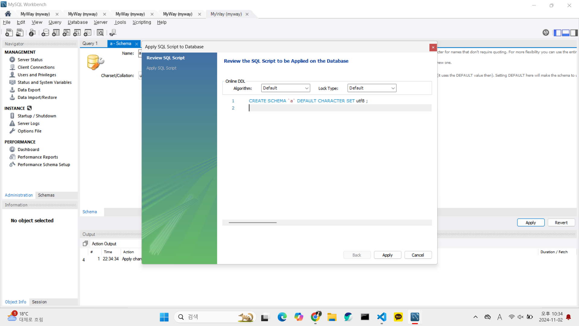 Apply 버튼을 눌러 스키마 생성을 완료한다!
