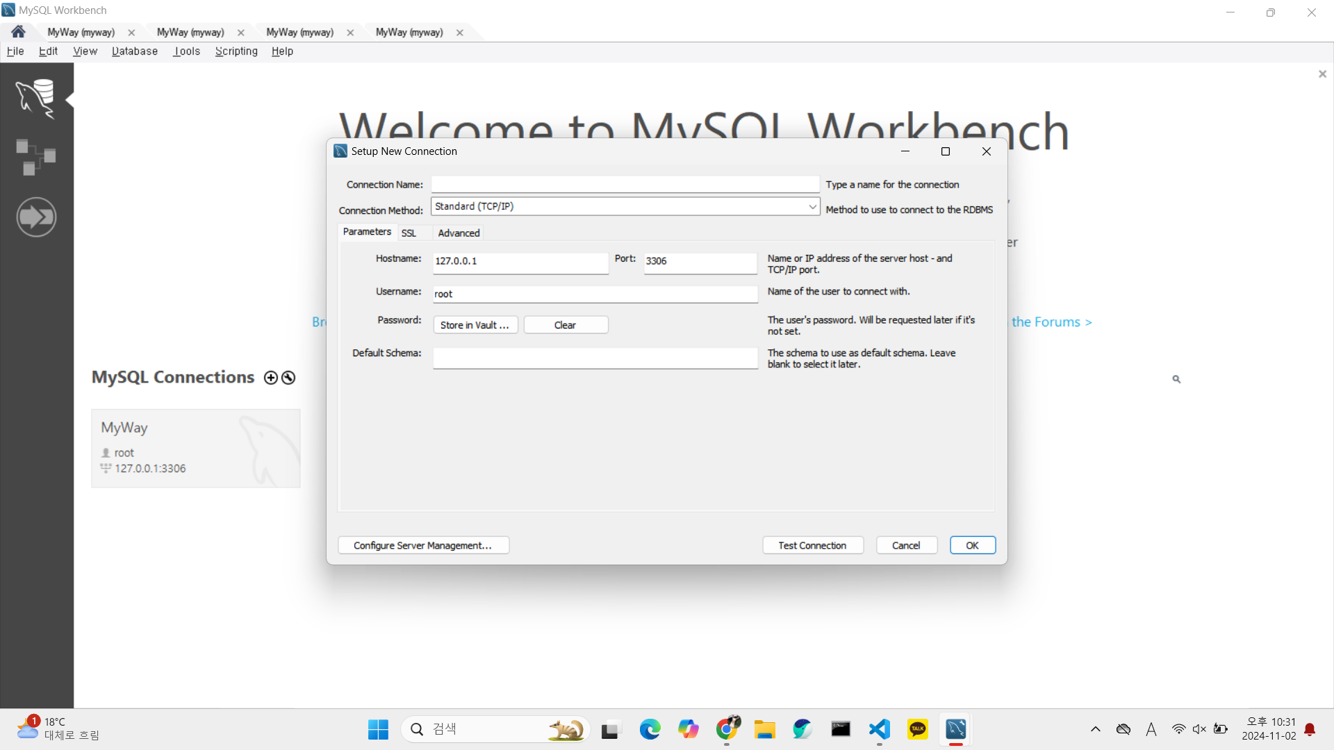 필요한 사항들에 체크해주면 mysql connections는 설정 끝!!