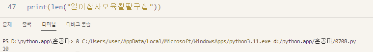 문자열의 길이는 len()을 사용해서 구할 수 있습니다.