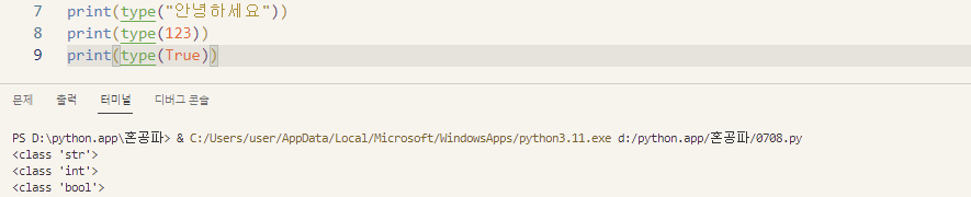 type() - ()안에 원하는 자료를 넣으면 자료형을 알 수 있습니다.