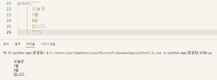 문자열 여러개는 \n을 줄바꿈하고 싶은 부분마다 넣어서 만들 수도 있지만 """~"""을 쓰는 방법도 있습니다!
