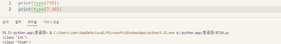 --> 정수형(int), 실수형(float)