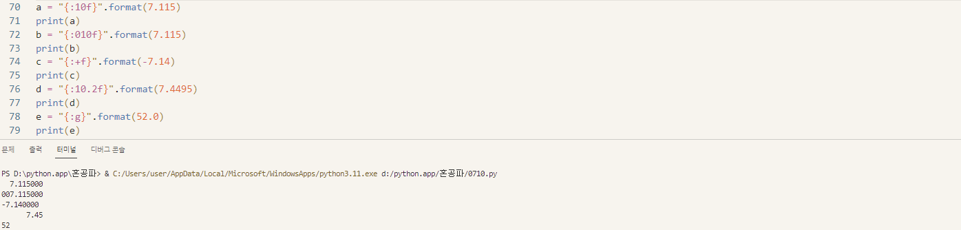 - format() 함수의 다양한 기능